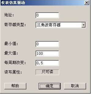 在這里我們使用信波提供的仿真設(shè)備驅(qū)動程序,來模擬從現(xiàn)場采集到的數(shù)據(jù)。將導(dǎo)航器切換到數(shù)據(jù)庫頁,雙擊“設(shè)備驅(qū)動/仿真儀表/紫金橋/儀表仿真驅(qū)動”項,彈出設(shè)備定義對話框。在對話框中輸入設(shè)備名Sim,數(shù)據(jù)更新周期50毫秒,設(shè)備地址1,點(diǎn)擊“完成”按鈕,完成仿真設(shè)備Sim的定義。