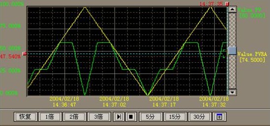 運(yùn)行系統(tǒng),我們能看到實(shí)時趨勢顯示的曲線如下所示: