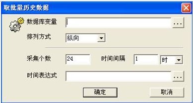 在“數(shù)據(jù)庫變量”中填寫所關(guān)聯(lián)的數(shù)據(jù)點,比如“A1.pv”,根據(jù)實際情況設(shè)定“采集個數(shù)”和“時間間隔”,“采集個數(shù)”不能填寫為變量。這里的“時間表達式”是指批量歷史中首個采集點的時間,可以是一個整形變量,其值是前文中提到的1970年1月1日08:00時過去的秒數(shù)。