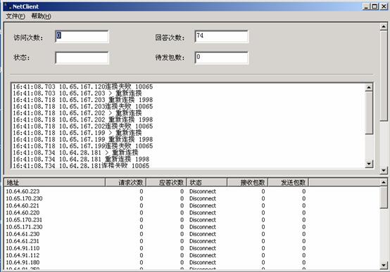服務(wù)器和數(shù)采機通過遠程數(shù)據(jù)源進行通信,通信狀態(tài)可以通過NetClient獲得。NetClient里記錄了總的訪問次數(shù)和回答次數(shù)、系統(tǒng)連接信息和遠程連接的狀態(tài)信息。