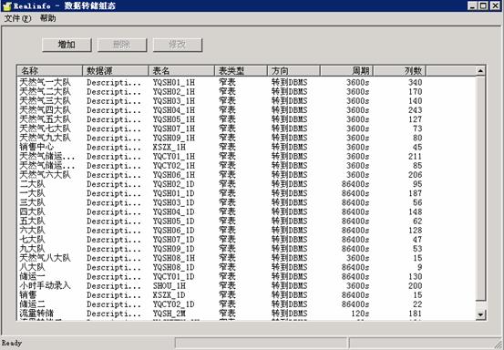 在“數(shù)據(jù)轉(zhuǎn)儲組態(tài)”中設(shè)置數(shù)據(jù)源、表名稱、表類型、方向、周期等信息。