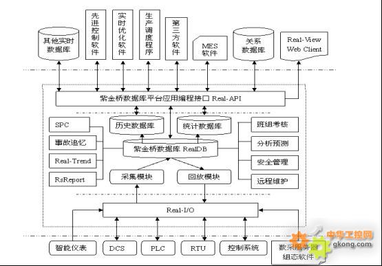 紫金橋?qū)崟r(shí)歷史數(shù)據(jù)庫系統(tǒng)采用分布式結(jié)構(gòu),即在公司信息中心設(shè)置一臺(tái)紫金橋?qū)崟r(shí)歷史數(shù)據(jù)庫服務(wù)器,該服務(wù)器負(fù)責(zé)存儲(chǔ)公司所有裝置控制系統(tǒng)的生產(chǎn)數(shù)據(jù)。接口機(jī)分布在各裝置控制室現(xiàn)場(chǎng),廠長、總工、科室和車間管理人員通過紫金橋?qū)崟r(shí)歷史數(shù)據(jù)庫來了解現(xiàn)場(chǎng)裝置的生產(chǎn)情況。在與局域網(wǎng)相連的每個(gè)用戶的PC機(jī)上安裝紫金橋客戶端軟件或直接通過IE來瀏覽紫金橋服務(wù)器中的生產(chǎn)數(shù)據(jù)。在公司管理層每個(gè)辦公室的電腦上看到的生產(chǎn)數(shù)據(jù)與DCS、PLC等系統(tǒng)保持同步,幾乎沒有時(shí)間上的延時(shí)。紫金橋?qū)崟r(shí)歷史數(shù)據(jù)庫系統(tǒng)是一個(gè)可擴(kuò)展的系統(tǒng),基于紫金橋?qū)崟r(shí)歷史數(shù)據(jù)庫平臺(tái),開發(fā)全公司各分廠的能源管理信息系統(tǒng)。