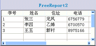 2.從Access數(shù)據(jù)庫寫入數(shù)據(jù)。在紫金橋軟件運(yùn)行窗口點(diǎn)擊查詢按鈕,則db2.dbm中的表通訊錄中的數(shù)據(jù)就寫入到紫金橋組態(tài)軟件的表FreeReport2中如圖九: