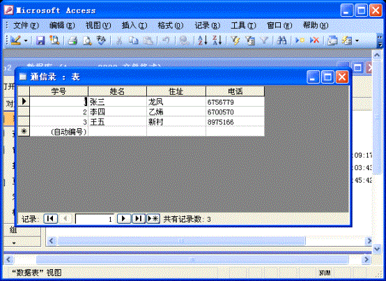 同理,新建表通訊錄,并寫入數(shù)據(jù)。如圖三:
