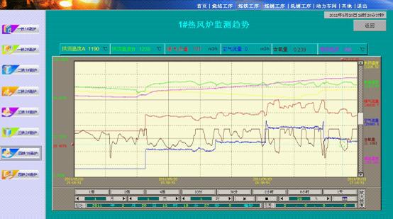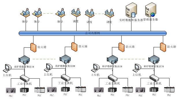 將8座高爐和7座轉爐的生產過程數(shù)據(jù)從自動化控制系統(tǒng)(PLC)中采集上來,然后通過網(wǎng)絡傳輸?shù)奖O(jiān)控中心的實時數(shù)據(jù)庫里面,實現(xiàn)生產數(shù)據(jù)的實時采集、實時存儲和歸檔。