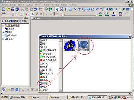 在紫金橋中配置使用視頻組件非常的容易,首先在組態(tài)畫面下找到”動(dòng)畫”類別,點(diǎn)擊媒體播放圖標(biāo)。