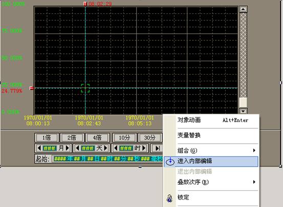 在窗口中選中組件、精靈、子圖等復(fù)合對(duì)象,單擊右鍵,在右鍵菜單中選擇計(jì)入內(nèi)部編輯。這時(shí)復(fù)合對(duì)象中包含的對(duì)象被激活,這時(shí)可以對(duì)其中包含的對(duì)象進(jìn)行位置調(diào)整,動(dòng)畫連接定義等,也可以刪除對(duì)象。下圖是趨勢(shì)精靈: