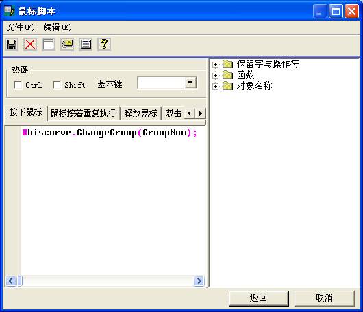 - 雙擊拖入趨勢(shì)中的“改變組”按鈕,定義其鼠標(biāo)動(dòng)作: