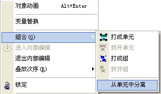 - 選中要移出對(duì)象,選擇右鍵菜單中的“從組件中分離”。菜單如下所示: