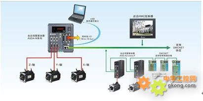 ▲ 與臺達(dá)HMC搭配,即可以DMCNET通訊架構(gòu)出整合性控制系統(tǒng)