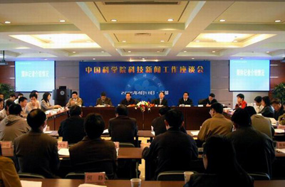4月18日,中國(guó)科學(xué)院新聞辦公室在成都分院召開(kāi)了科技新聞工作座談會(huì)。中科院辦公廳主任蔣協(xié)助、四川省委宣傳部常務(wù)副部長(zhǎng)杜江、成都分院院長(zhǎng)彭宇行、黨組書(shū)記汪光澤、副院長(zhǎng)關(guān)曉崗以及院屬成都地區(qū)各單位負(fù)責(zé)人、信息員參加了會(huì)議。來(lái)自人民日?qǐng)?bào)、新華社、光明日?qǐng)?bào)、經(jīng)濟(jì)日?qǐng)?bào)、科技日?qǐng)?bào)、四川日?qǐng)?bào)、四川電視臺(tái)、四川電臺(tái)、成都日?qǐng)?bào)、成都電視臺(tái)、成都電臺(tái)的有關(guān)領(lǐng)導(dǎo)或記者出席了座談會(huì)。