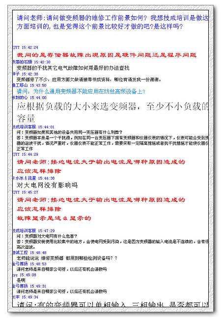 通過為期一周的準備,2008年7月6日,中華工控網(wǎng)與技成培訓聯(lián)合舉行了變頻器應用與故障處理QQ群在線交流答疑活動,整個活動持續(xù)將近兩小時。