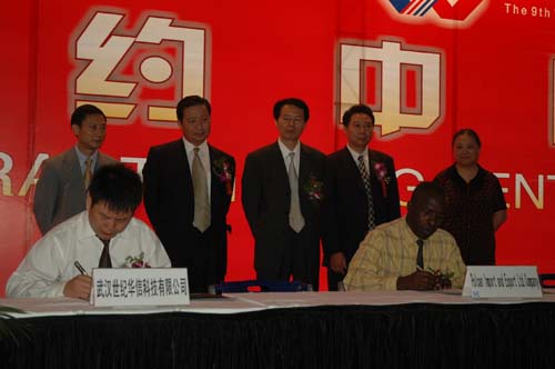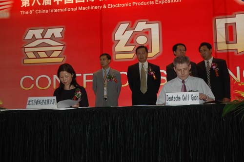 2007年9月25日,“第八屆中國(guó)國(guó)際機(jī)電產(chǎn)品博覽會(huì)、第九屆武漢經(jīng)貿(mào)洽談會(huì)”進(jìn)出口貿(mào)易項(xiàng)目簽約儀式盛大召開(kāi)。神龍汽車有限公司、PEUGEOT CITROEN AUTOMOBILES、長(zhǎng)飛光纖光纜有限公司、Heraeus Tenevo LLC、武漢日新科技有限公司、Deutsche Cell Gmbh、武漢郵電科學(xué)研究院、OKL Electronics(H.K.)Ltd、武漢世紀(jì)華信科技有限公司等多家中外知名企業(yè)參加了此次簽約儀式。