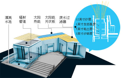 加利福尼亞州代表隊(duì)的房屋設(shè)計(jì)充分利用陽光和雨水,力求做到房屋的“零消耗”和“零浪費(fèi)”,來看看幾個(gè)核心技術(shù):