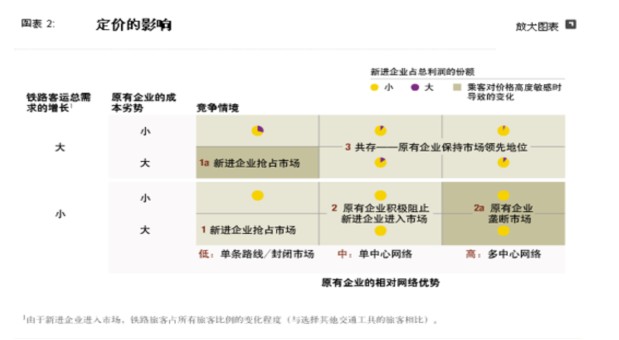 其他行業(yè)的管制解除經(jīng)驗(yàn)為鐵路運(yùn)營商提供了一些經(jīng)驗(yàn)教訓(xùn),其中之一是,價(jià)格戰(zhàn)是徒勞無益的,通常會(huì)破壞行業(yè)的盈利性。但由于鐵路行業(yè)的獨(dú)特性,預(yù)測(cè)競(jìng)爭(zhēng)會(huì)如何改變市場(chǎng)格局十分困難。例如,在鐵路客運(yùn)服務(wù)中,網(wǎng)絡(luò)效應(yīng)很普遍,因?yàn)檫B接乘客和眾多城鎮(zhèn)的線路往往具有高度的相互依賴性。