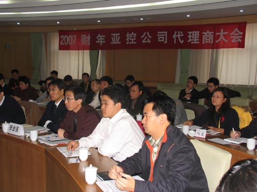 會(huì)議首先由亞控公司市場(chǎng)部曹文立先生發(fā)表了熱情洋溢的開幕致辭,高度評(píng)價(jià)了代理商伙伴多年以來的精誠(chéng)合作與取得的輝煌成就,另外還詳細(xì)闡述了2007財(cái)年的代理商政策與全新的營(yíng)銷計(jì)劃。