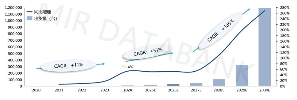 2024年,中國六維力傳感器在人形機器人領(lǐng)域出貨量超2000臺,同比增長1100%。預計自2027年起,中國六維力傳感器市場將迎來實質(zhì)性放量階段,到2030年中國六維力傳感器在人形機器人領(lǐng)域的出貨量將有望達到23萬臺,2024年~2030年的復合增長率將超過20%。