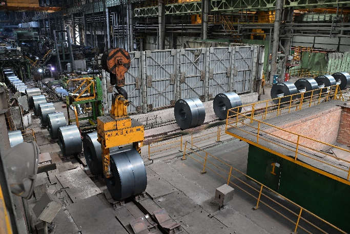 如今,經(jīng)過改造的1580熱軋卷庫區(qū)實(shí)現(xiàn)了從熱卷入庫到打包、平整、倒運(yùn)、取樣以及鋼卷出庫的全流程無人化作業(yè),滿足單天1.3萬噸全流程產(chǎn)能需求。工作人員只需要編制好生產(chǎn)計(jì)劃、轉(zhuǎn)庫駁運(yùn)計(jì)劃,系統(tǒng)就能自動(dòng)分配任務(wù)并設(shè)定行車行駛路線完成吊運(yùn)作業(yè),并可24小時(shí)不間斷運(yùn)行,提高吊運(yùn)作業(yè)的標(biāo)準(zhǔn)化和連續(xù)運(yùn)行作業(yè)效率,降低因人為因素造成的停機(jī)時(shí)間、往返路程、搜尋時(shí)間和倒庫次數(shù)。