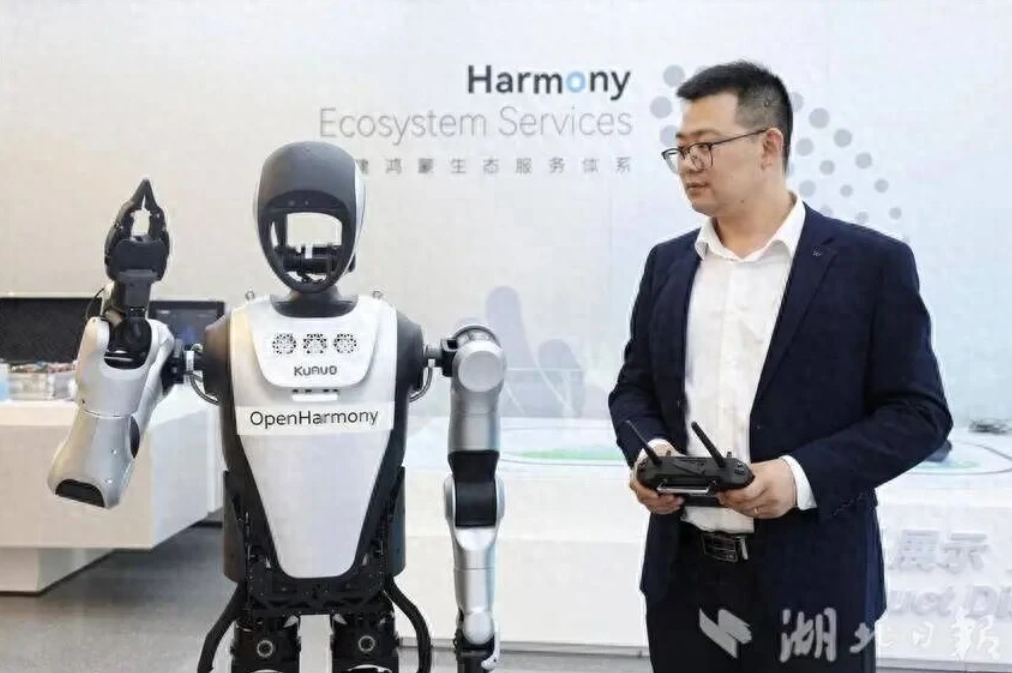10月28日,鴻蒙生態(tài)(武漢)創(chuàng)新中心的智慧展廳,全球首臺(tái)搭載開源鴻蒙系統(tǒng)的機(jī)器人驚艷亮相,吸引不少參觀者與其互動(dòng)。