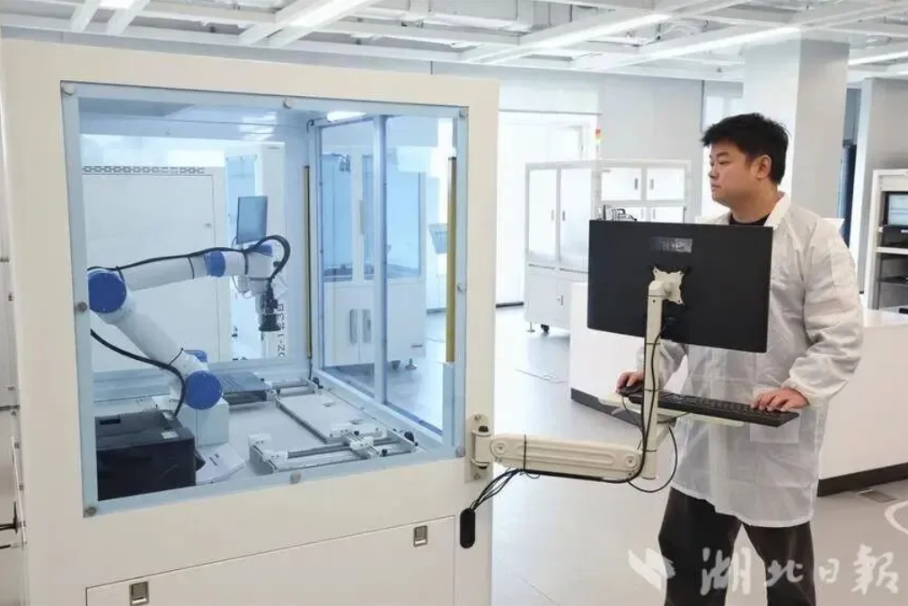 星漢實(shí)驗(yàn)室內(nèi),工作人員正在進(jìn)行系統(tǒng)溫升測(cè)試。(湖北日?qǐng)?bào)全媒記者 陳少哲 攝)