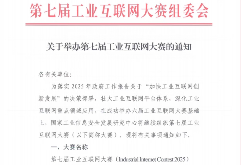 | 第七屆工業(yè)互聯(lián)網(wǎng)大賽在京正式啟動 近日,第七屆工業(yè)互聯(lián)網(wǎng)大賽在中關(guān)村工業(yè)互聯(lián)網(wǎng)產(chǎn)業(yè)園正式啟動。大賽以“一圖四清單”為工作指引,聚焦制造業(yè)數(shù)字化轉(zhuǎn)型的重點(diǎn)方向,力求通過場景化和圖譜化的方式打通場景與數(shù)據(jù),為產(chǎn)業(yè)轉(zhuǎn)型提供可落地的解決方案。(原文閱讀) |  |