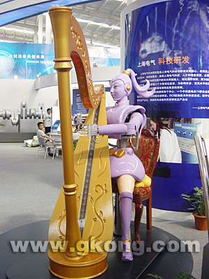 在“十五”成果展現(xiàn)場(chǎng),參展商大打“沈陽(yáng)地鐵”牌,昊誠(chéng)電氣、沈陽(yáng)重機(jī)、北方機(jī)車(chē)等分別對(duì)沈陽(yáng)地鐵電氣、盾構(gòu)機(jī)、地鐵車(chē)廂等項(xiàng)目“虎視眈眈”,確立各自的研究。上海電氣集團(tuán)帶來(lái)的展品中,一個(gè)機(jī)器美女悠閑的彈著豎琴,《小城故事》、《彩云追月》等名曲從她秀麗的手下悠揚(yáng)而出。更加使人們驚奇的是,她的頭、手、眼睛都可以靈活的活動(dòng),分外引人注目。沈陽(yáng)新松機(jī)器人自動(dòng)化股份有限公司則展出了另外的家庭智能型機(jī)器人,“我累了,不想說(shuō)話”,這是從這個(gè)?!靶∑狻钡臋C(jī)器人嘴里發(fā)出來(lái)的。這個(gè)今年4月份才研制出來(lái)的新一代家庭智能型服務(wù)機(jī)器人,甚至能上網(wǎng)給主人發(fā)短信。中國(guó)最大的電壓等級(jí)變壓器則由特變電工沈變集團(tuán)布置在會(huì)展中心的大院展場(chǎng)上,這個(gè)猶如一所房屋大小、重達(dá)145噸的龐然大物,是中國(guó)首臺(tái)自主研發(fā)的1000KV特高壓交流變壓器。中科院沈陽(yáng)自動(dòng)化研究所生產(chǎn)的小型飛機(jī),據(jù)了解,在軍事、公安、邊防、消防等特殊領(lǐng)域能完成人們無(wú)法實(shí)現(xiàn)的任務(wù),人們稱之為“反恐奇兵”。