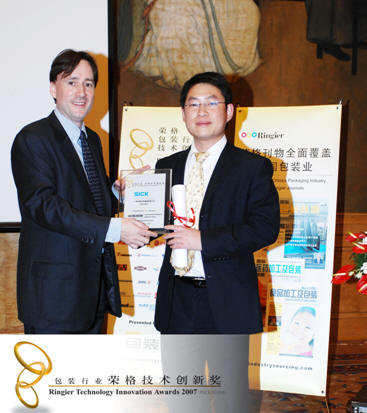 2007年11月19日,“2007包裝行業(yè)榮格技術(shù)創(chuàng)新獎”頒獎典禮在上海希爾頓酒店隆重舉行。該盛會由榮格公司《國際包裝商情》雜志全力主辦。創(chuàng)新獎獲獎企業(yè)經(jīng)過獨立的專家委員會的評審決議,依據(jù)公司的技術(shù)優(yōu)勢、產(chǎn)品特點,以及對中國包裝行業(yè)的重大影響評選獲得。