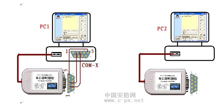 此時本地計算機PC1必須接USB232GH8,并且打開好靈通串口,而且本地計算機PC1還必須有另外一個自己的串口COM-X。此時遠程計算機必須接USB232GH8,并且打開好靈通串口。