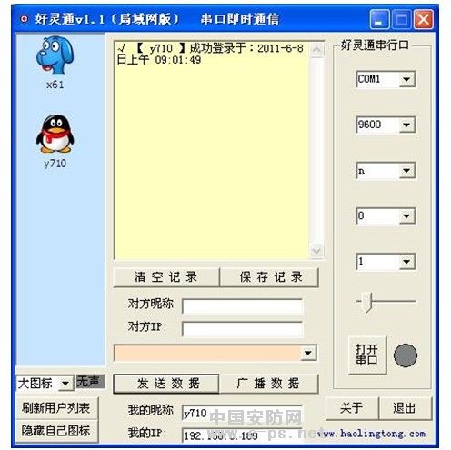 顯然好靈通串口即時通信必須至少有2個用戶,當然也支持多個用戶。