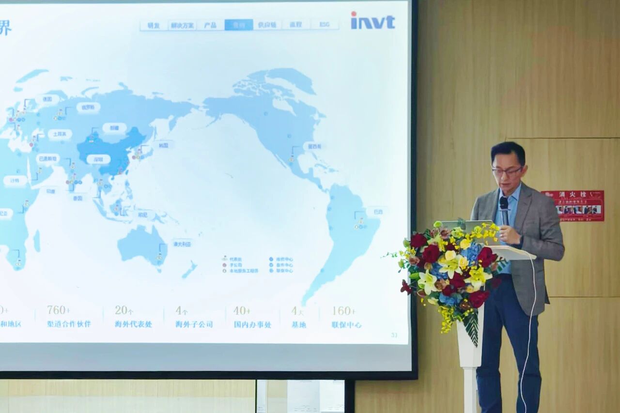 活動伊始,英威騰區(qū)域銷服體系總經(jīng)理王健先生發(fā)表開場致辭。他首先對到場嘉賓表示熱烈歡迎,并強調(diào):“西南地區(qū)作為國家戰(zhàn)略發(fā)展的核心區(qū)域之一,蘊含著巨大的市場潛力。英威騰始終以客戶需求為導向,通過技術(shù)創(chuàng)新與本地化服務,助力區(qū)域產(chǎn)業(yè)升級。”隨后,王健先生通過PPT詳細介紹了英威騰的發(fā)展歷程、核心業(yè)務布局及全球市場戰(zhàn)略,重點展示了公司在工業(yè)自動化、新能源等領(lǐng)域的領(lǐng)先技術(shù),為后續(xù)環(huán)節(jié)奠定基調(diào)。
