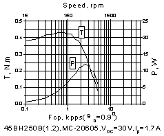 以下列出由45系列電動機(jī)與MC系列驅(qū)動器所組成的典型驅(qū)動單元牽出特性曲線。