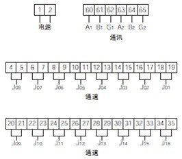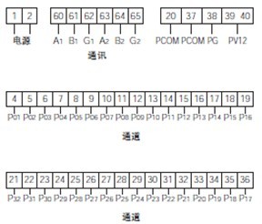 無源干接點(diǎn):Pi(i=1-32)與公共端PV12為各通道接入端,同時(shí)PCOM和PG短接。