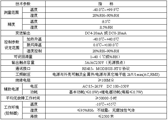 ● 控制器常規(guī)為環(huán)境濕度≥85%RH加熱除濕控制啟動,溫度≤5℃加熱升溫控制啟動,≥40℃鼓風降溫控制啟動;