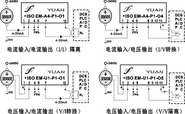 ● 0-5V/0-10V/0-75mV/0-2.5V/0-10mA/0-20mA/4-20mA等國際標(biāo)準(zhǔn)信號(hào)輸入,輸出標(biāo)準(zhǔn)的隔離信號(hào)。
