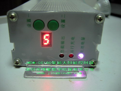 4、太陽能控制器:采用了深圳精敏數(shù)字機(jī)器有限公司自主研發(fā)生產(chǎn)的JMDM-SC160智能太陽能控制器。