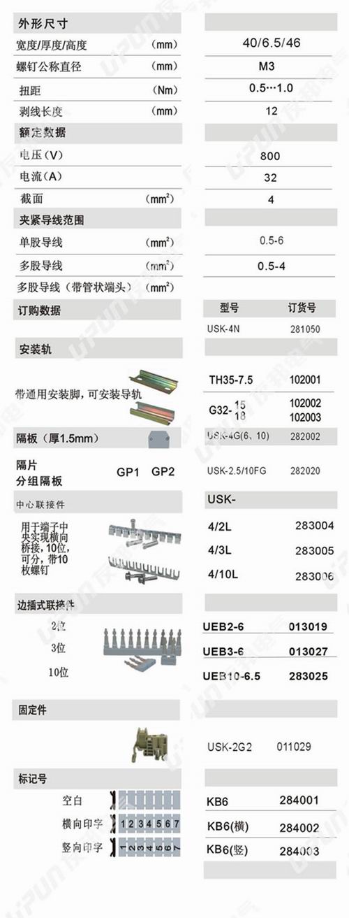 → USK-4N 框式螺釘壓接端子排