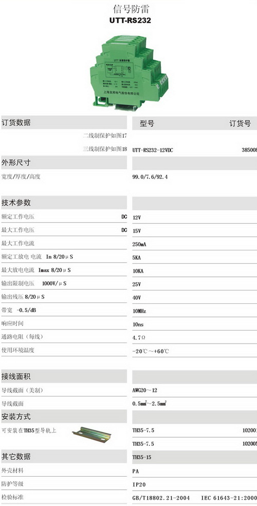 UTT-RS232 信號(hào)防雷電涌保護(hù)器