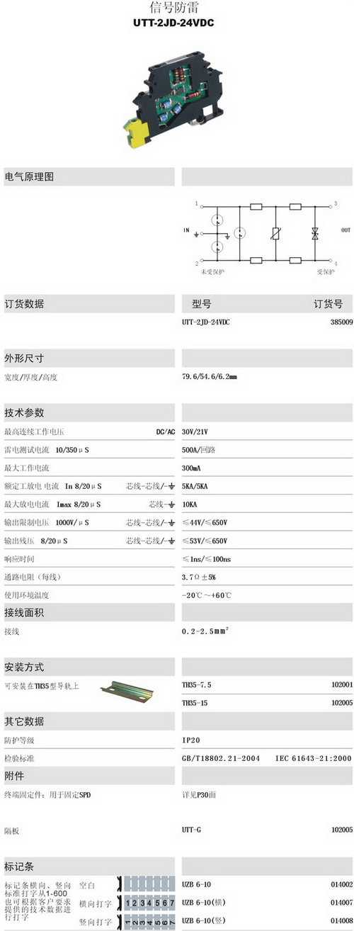 → UTT-2JD-24VDC 信號(hào)防雷電涌保護(hù)器