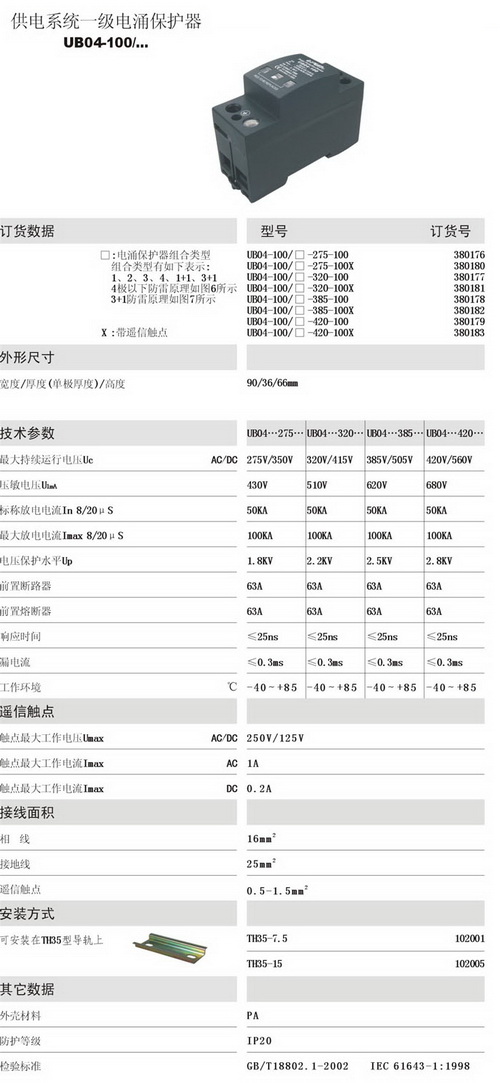 UB04/100 供電系統(tǒng)一級電涌保護器