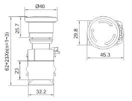 1常閉觸點,Φ36蘑菇頭急停按鈕:LA130-22D-01Z/R-36