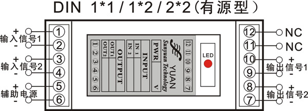 一進二出模擬信號磁電隔離變送器:DIN 1X2 |