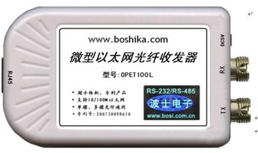波仕電子的OPET100L是最新一代以太網(wǎng)光纖通信產(chǎn)品,直接從以太網(wǎng)口轉(zhuǎn)換出一對光纖收發(fā)頭(FC頭)進行遠(yuǎn)程傳輸。波仕OPET100L微型以太網(wǎng)光纖收發(fā)器具有超小型的外形(74*23*47mm)、實現(xiàn)以太網(wǎng)的光纖傳輸、無須修改已有的軟件、無須驅(qū)動程序。OPET100L可以成對使用、也可以與其他符合100Base-TX標(biāo)準(zhǔn)的以太網(wǎng)光口通信。OPET100L1為單纖收發(fā)器,只用一根光纖收發(fā),成對使用。由于采用光纖作為通信傳輸介質(zhì),具有隔離高電壓、防電磁干擾、傳輸距離遠(yuǎn)等優(yōu)點。