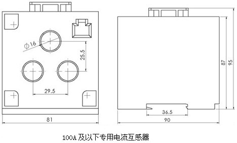 保護(hù)器同時(shí)具備接地保護(hù)和漏電保護(hù)功能。接地保護(hù)電流信號(hào)取于內(nèi)部電流互感器的矢量和,用于保護(hù)相線對(duì)電動(dòng)機(jī)金屬外殼的短路保護(hù),保護(hù)器可通過增加漏電互感器,檢測出30mA~50mA的故障電流,主要用于非直接接地的