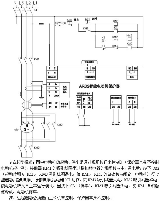ARD2F系列智能電動機(jī)保護(hù)器(以下簡稱保護(hù)器),采用最新的單片機(jī)技術(shù),具有抗干擾能力強(qiáng)、工作穩(wěn)定可靠、數(shù)字化、智能化、網(wǎng)絡(luò)化等特點(diǎn)。保護(hù)器能對電動機(jī)運(yùn)行過程中出現(xiàn)的起動超時、過載、堵轉(zhuǎn)、斷相、不平衡、欠載、接地/漏電、阻塞、過壓、欠壓、繞組超溫等多種情況進(jìn)行保護(hù),設(shè)有SOE故障事件記錄功能,方便現(xiàn)場維護(hù)人員查找故障原因,并通過LCD中文液晶顯示屏、狀態(tài)指示燈等各種方式,將電機(jī)的運(yùn)行狀態(tài)清晰、直觀地顯示出來。適用于煤礦、石化、冶煉、電力、船舶以及民用建筑等領(lǐng)域。該保護(hù)器具有RS485遠(yuǎn)程通訊接口,DC4~20mA模擬量輸出,方便與PLC、PC等控制機(jī)組成網(wǎng)絡(luò)系統(tǒng),實(shí)現(xiàn)電動機(jī)運(yùn)行的遠(yuǎn)程監(jiān)控。