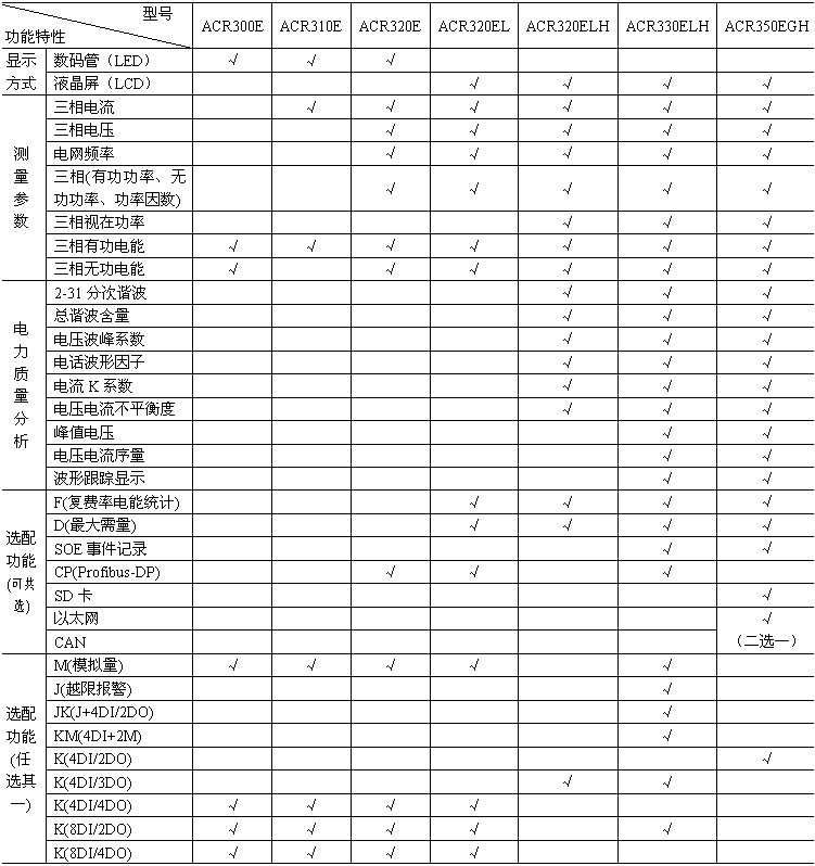 1、ACR300E、ACR310E、ACR320E(L)在選配K(4DI/4DO、8DI/4DO)功能時(shí)無(wú)脈沖信號(hào)輸出端口;