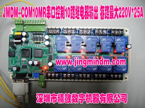 JMDM-COM10MR是一款深圳市精敏數(shù)字機(jī)器有限公司自主研發(fā)的一款具有高可靠穩(wěn)定性的工業(yè)單片機(jī)數(shù)字量串口控制器,可用于10路25A大負(fù)載的開關(guān)控制,如燈光、發(fā)熱絲、電源開關(guān)、強(qiáng)電開關(guān)等大功率器件等;同時可采集4路開關(guān)量輸入信號,可接光電式,電容式,電感式,霍爾式等各種傳感器和輸入開關(guān),方便很多工業(yè)或民用應(yīng)用場合的行程開關(guān)、紅外開關(guān)等信號檢測或條件輸入,來控制輸出動作。產(chǎn)品具有如下特征: