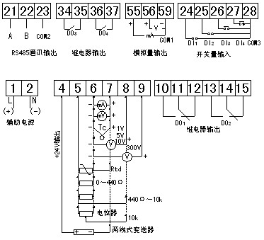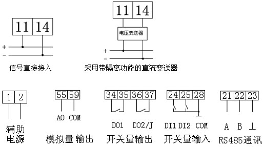 儀表可具有RS-485 通訊接口,采用Modbus-RTU 協(xié)議;可帶模擬量輸出、繼電器報(bào)警輸出、開(kāi)關(guān)量輸入/輸出。根據(jù)不同要求,通過(guò)儀表面板按鍵,對(duì)變比、報(bào)警、通訊、開(kāi)關(guān)量輸出進(jìn)行設(shè)置與控制。
