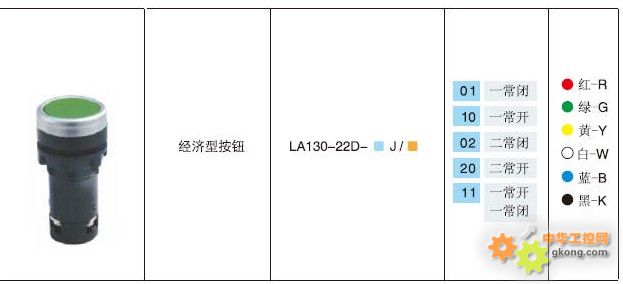 1常開觸點(diǎn),綠色經(jīng)濟(jì)型按鈕型號(hào)為:LA130-22D-10J/G