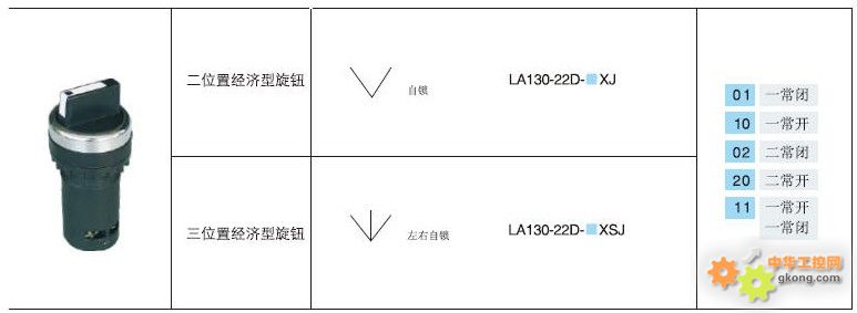 1常開觸點+1常閉觸點,三位置自鎖經(jīng)濟(jì)型旋鈕:LA130-22D-11XSJ