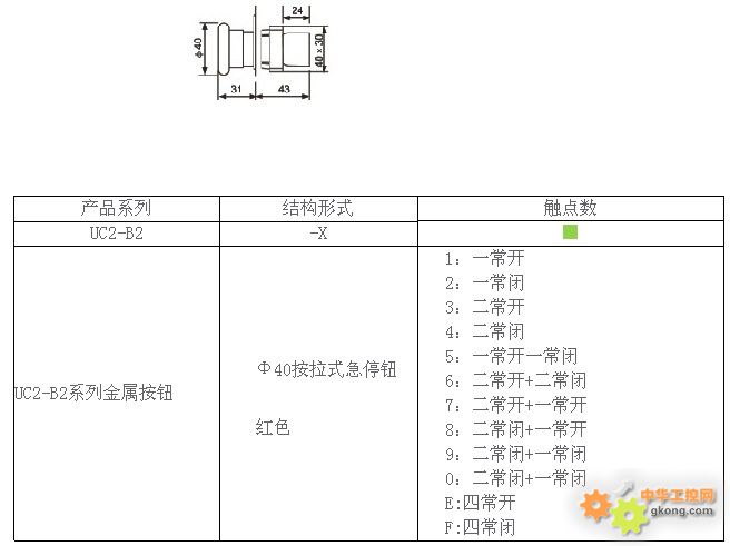 → UC2-B2-X4□ 蘑菇頭按鈕